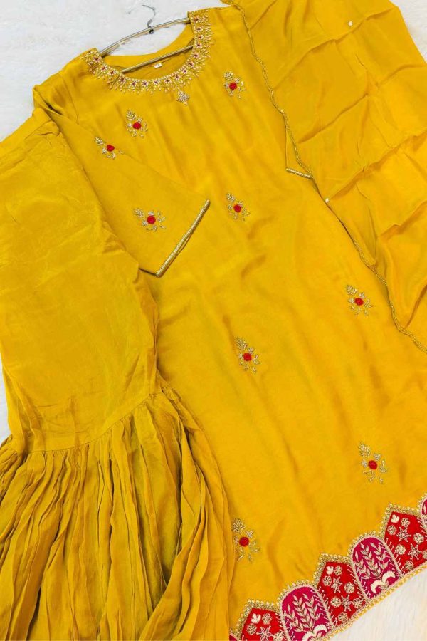Radiant Yellow Zardozi Sharara Suit with Elegant Dupatta – Party Wear SuitRadiant Yellow Zardozi Sharara Suit with Elegant Dupatta – Party Wear Suit